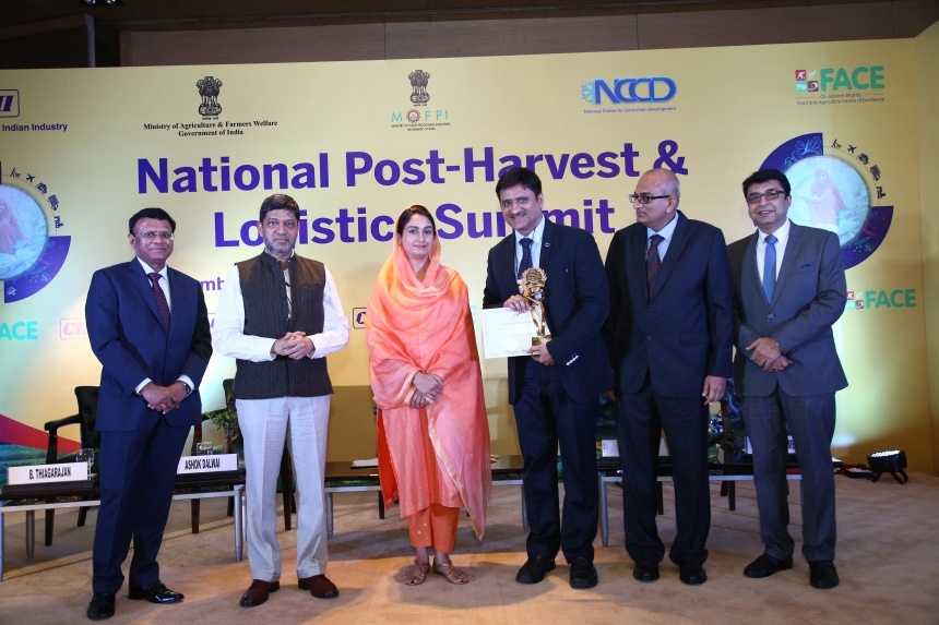 The award was presented by the Honourable Minister of Food Processing Industries of India, Mrs Harsimrat Kaur Badal during National Post-Harvest & Logistics Summit held at a grand ceremony in New Delhi on 25th September, 2018.